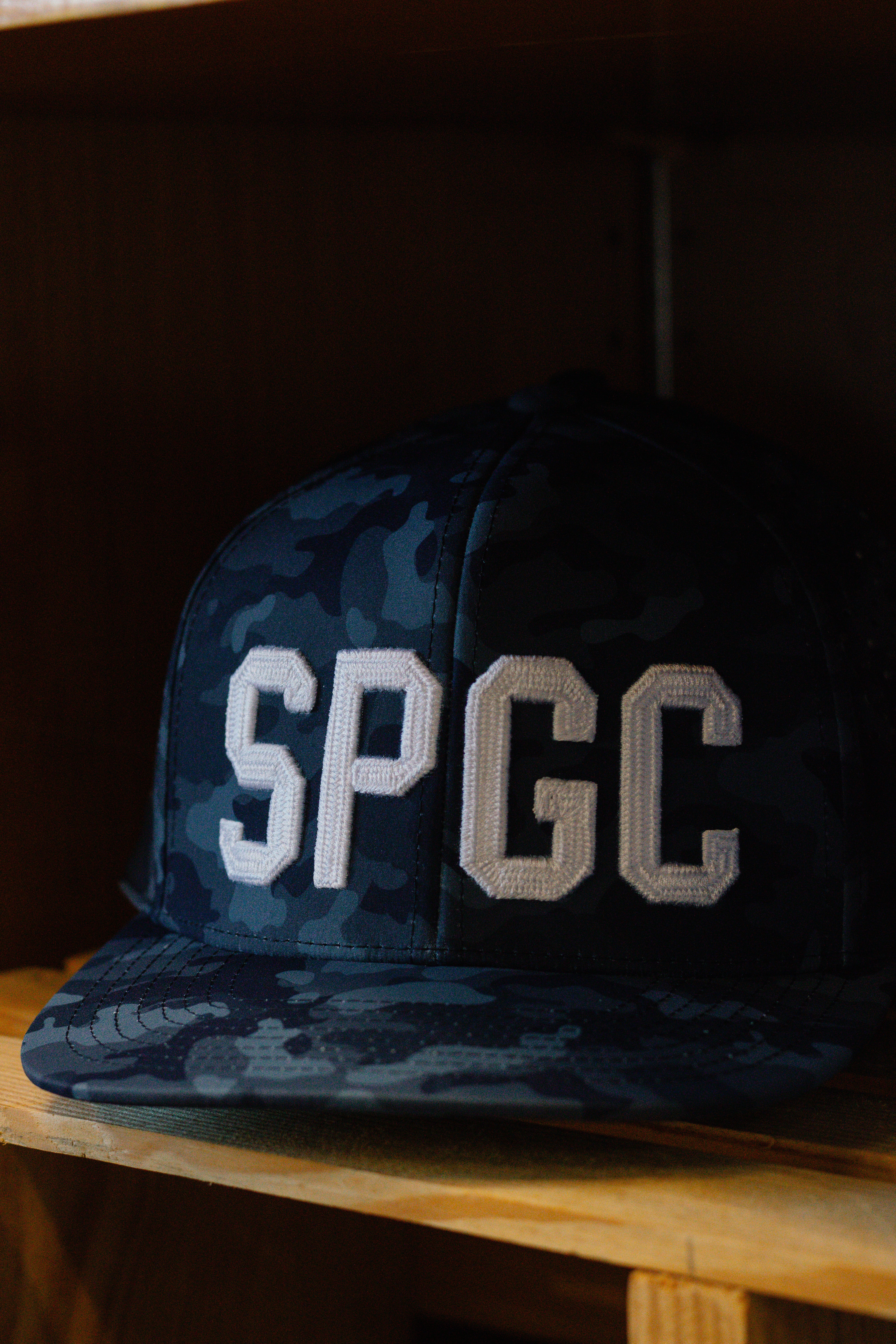 G/Fore Performance Hat with blue camo and white SPGC lettering.